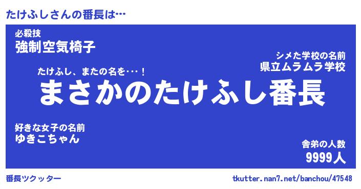 | 肩書あだ名 | 『たけふし御曹司』『たけふし国家主席』 |