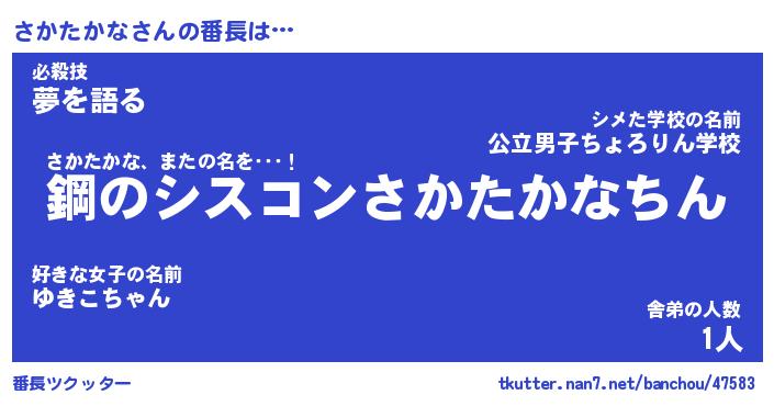 | 伝説のあだ名 | 『封印されしスナイパーさかたかな』 |