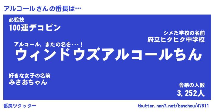 | 伝説のあだ名 | 『伝説のスナイパーアルコール』 |