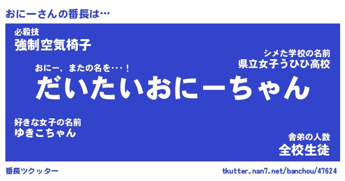 | 意味不明あだ名 | 『ペロリンおにー』『おにーフォーエバー』 |
