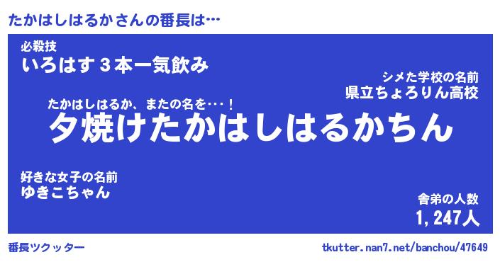 | 男性向けラノベタイトル風あだ名 | 『タカハシハルカアートオンライン』 |