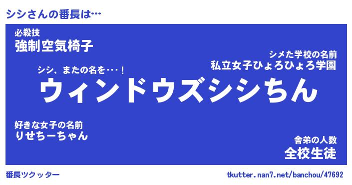 | ヒーロー風カッコイイあだ名 | 『スーパーシシ』『ウルトラシシマン』 |