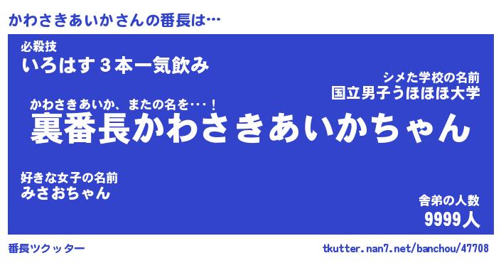 | ヒーロー風カッコイイあだ名 | 『スーパーカワサキアイカ』 |