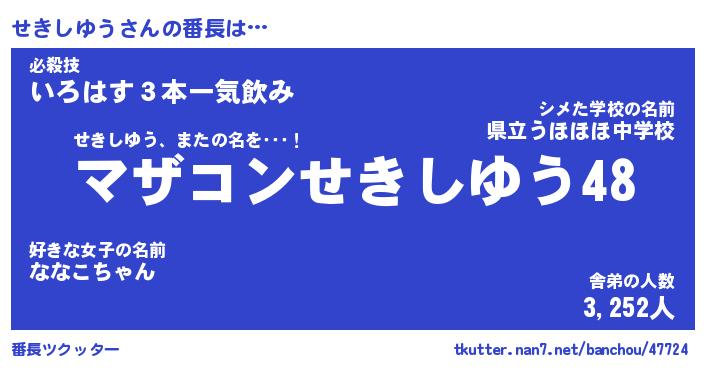 | ヘコむあだ名 | 『せきにー』『牛乳』『せき太郎』 |