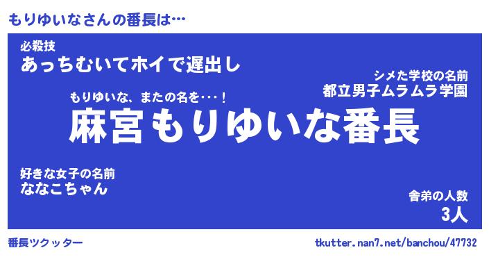 | ヒーロー風カッコイイあだ名 | 『スーパーモリユイナ』『魔戒騎士モリ』 |