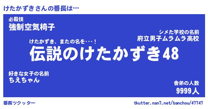| 伝説のあだ名 | 『伝説の傭兵けたかずき』 |