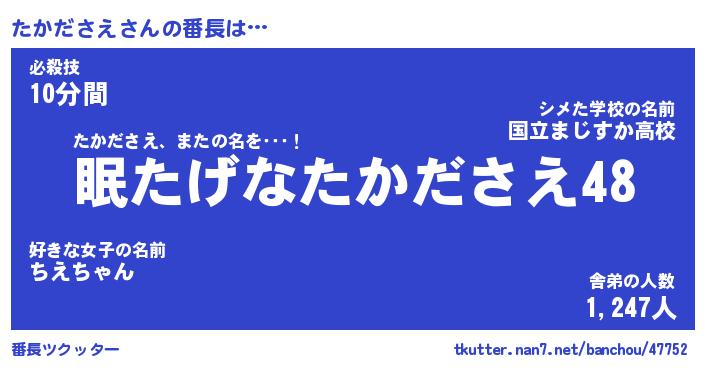 | 2回繰り返すあだ名 | 『たかたか』『たたかか』『おやおや』 |