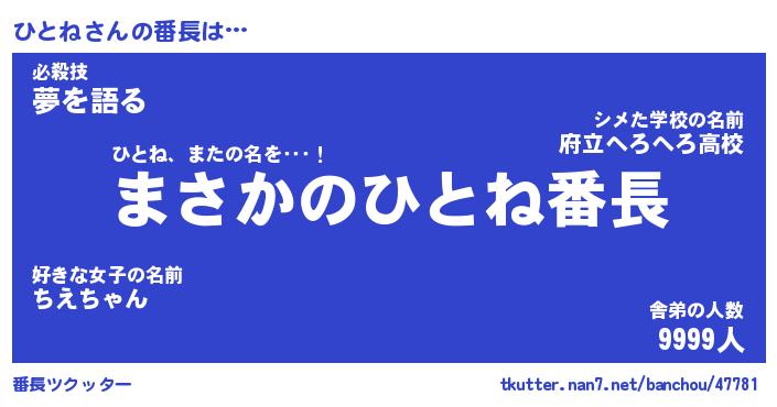 | ヒーロー風カッコイイあだ名 | 『スーパーヒトネ』『ウルトラひとねマン』 |