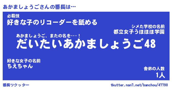 | 肩書あだ名 | 『あかましょうご御曹司』 |