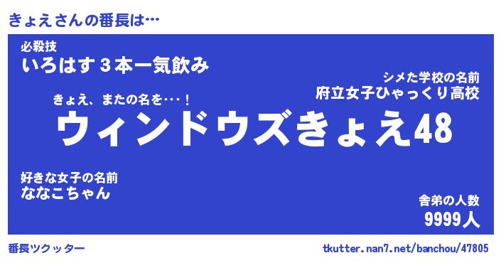 | ヘコむあだ名 | 『きょにー』『酢こんぶ』『きょを』 |