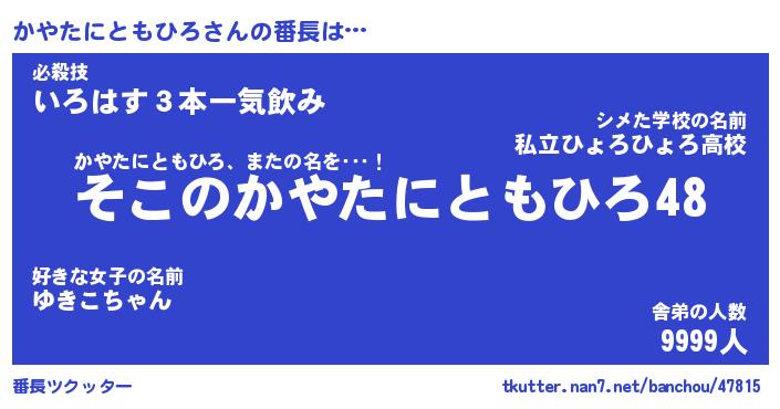 | ヒーロー風カッコイイあだ名 | 『スーパーカヤタニトモヒロ』 |