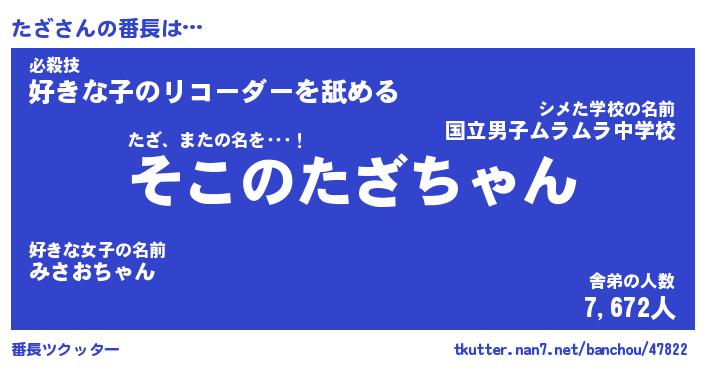 | 肩書あだ名 | 『たざ店長』『たざ総理大臣』 |
