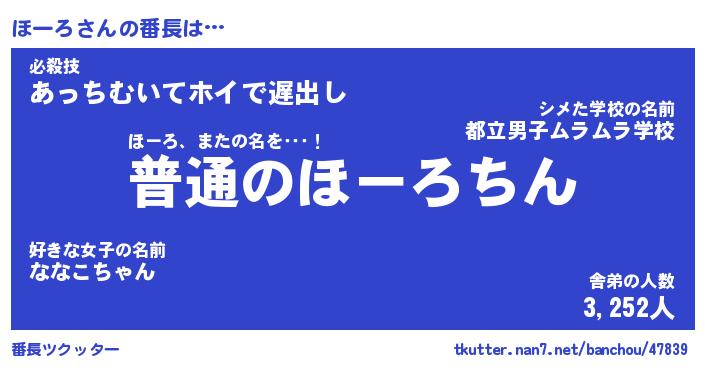 | 意味不明あだ名 | 『ペロリンほーろ』『ほーろフォーエバー』 |