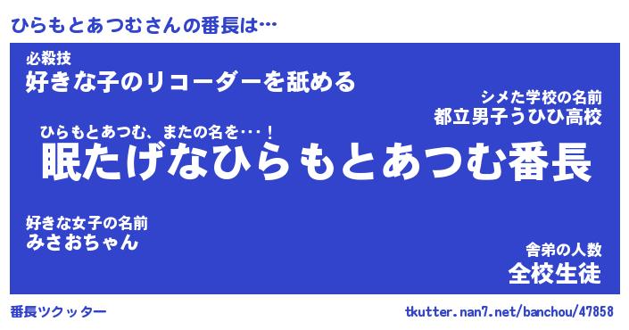 | 意味不明あだ名 | 『ペロリンひらもとあつむ』 |