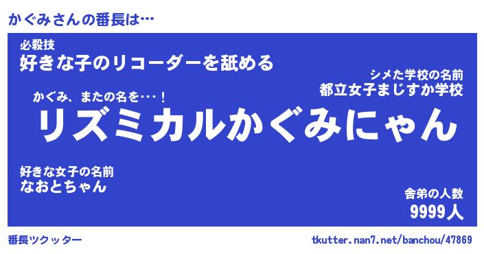 | ヘコむあだ名 | 『かぐにー』『酢こんぶ』 |
