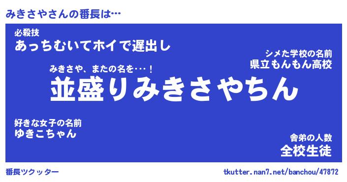 | ポケモン風あだ名 | 『ミキチュウ』『ミキサダネ』 |