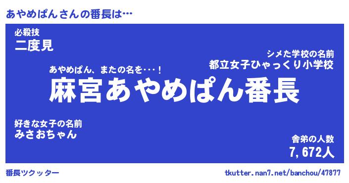 | 2回繰り返すあだ名 | 『あやあや』『ああやや』『ぬらぬら』 |