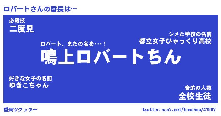 | 肩書あだ名 | 『ロバート御曹司』『ロバート国家主席』 |