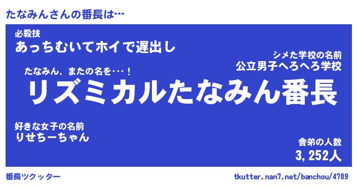 | ポケモン風あだ名 | 『タナチュウ』『タナミダネ』 |