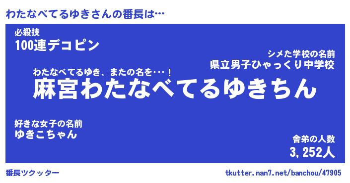 | ポケモン風あだ名 | 『ワタチュウ』『ワタナダネ』 |