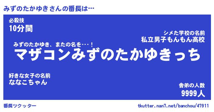 | 伝説のあだ名 | 『封印されしスナイパーみずのたかゆき』 |