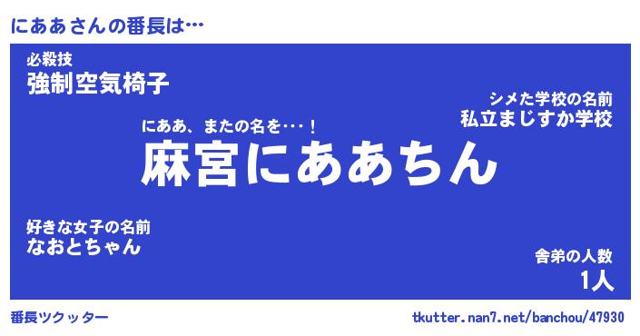 | 肩書あだ名 | 『にああ社長令嬢』『にああ大統領』 |