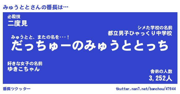 | 肩書あだ名 | 『みゅうとと御曹司』『みゅうとと大統領』 |
