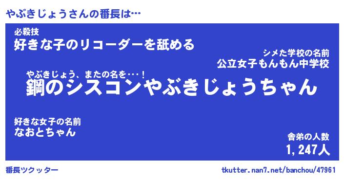 | ポケモン風あだ名 | 『ヤブチュウ』『ヤブキダネ』 |