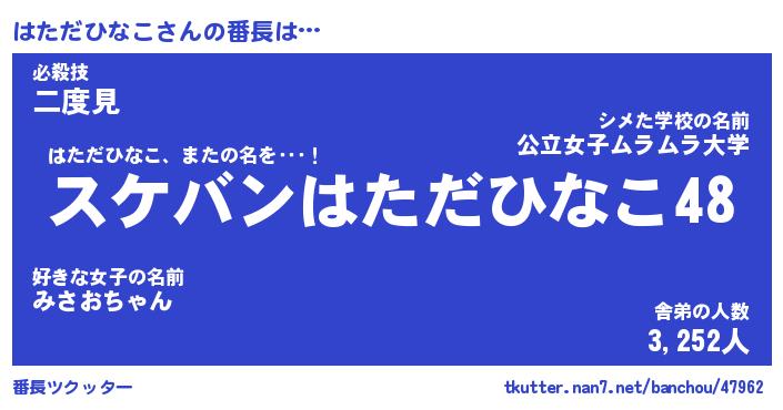 | ヒーロー風カッコイイあだ名 | 『スーパーハタダヒナコ』『炎刃騎士ハタ』 |