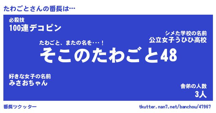 | ピコ太郎風あだ名 | 『タコ十郎』『ピタ太郎』『タワ五郎』 |
