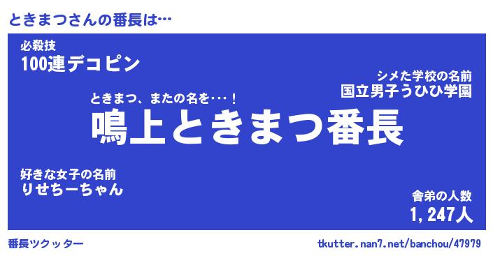 | 肩書あだ名 | 『ときまつ御曹司』『ときまつ国家主席』 |