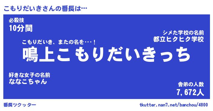 ヒーロー風カッコイイあだ名 | 『スーパーコモリダイキ』『炎刃騎士コモ』 |