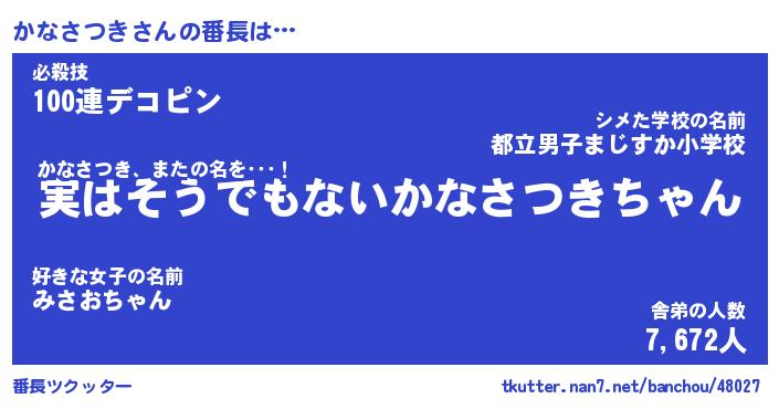 | 伝説のあだ名 | 『封印されしスナイパーかなさつき』 |