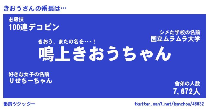 | ヒーロー風カッコイイあだ名 | 『スーパーキオウ』『ウルトラきおうマン』 |