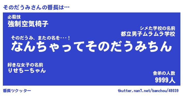 | ポケモン風あだ名 | 『ソノチュウ』『ソノダダネ』 |