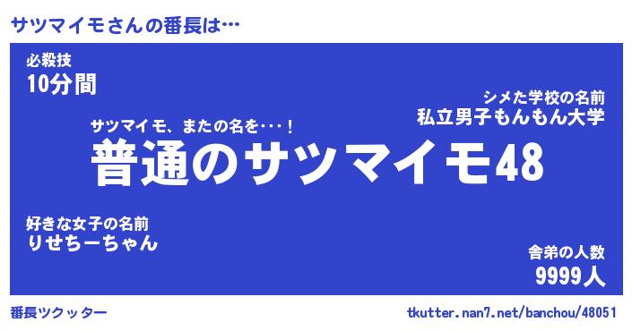 | ファンタジー風あだ名 | 『サツフェル』『エターナルサツマイモー』 |