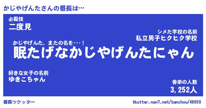 | 伝説のあだ名 | 『封印されしスナイパーかじやげんた』 |
