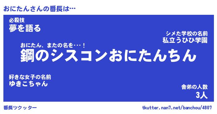 | ヒーロー風カッコイイあだ名 | 『スーパーオニタン』『魔戒騎士オニ』 |