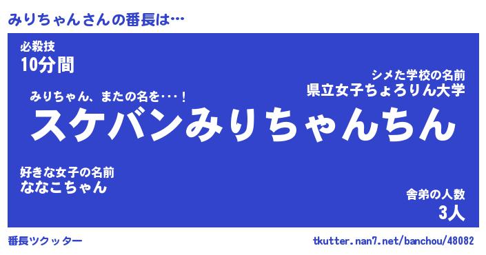 | 伝説のあだ名 | 『不死鳥のスナイパーみりちゃん』 |