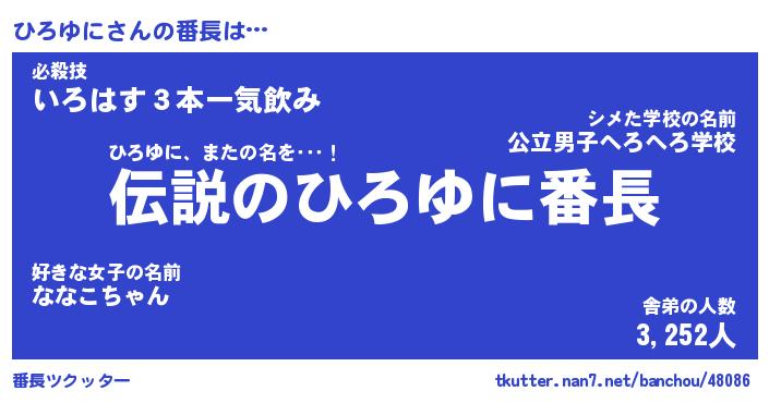 | 意味不明あだ名 | 『ペロリンひろゆに』『永久保存ひろゆに』 |