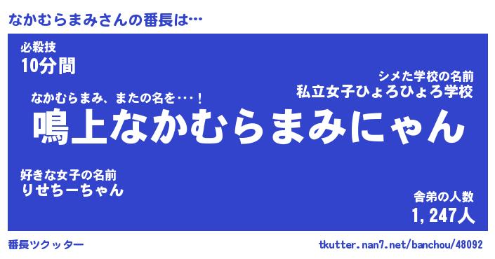 | ヒーロー風カッコイイあだ名 | 『スーパーナカムラマミ』『銀牙騎士ナカ』 |