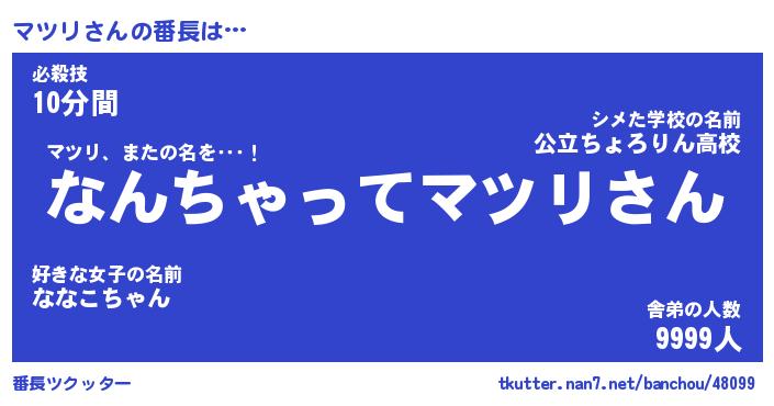 | ヒーロー風カッコイイあだ名 | 『スーパーマツリ』『ウルトラマツリマン』 |
