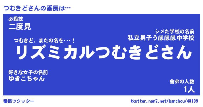 | 2回繰り返すあだ名 | 『つむつむ』『つつむむ』『ねちねち』 |