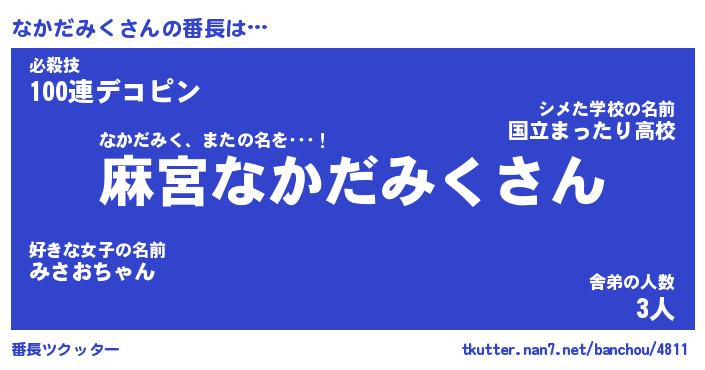 | 伝説のあだ名 | 『不死鳥のスナイパーなかだみく』 |