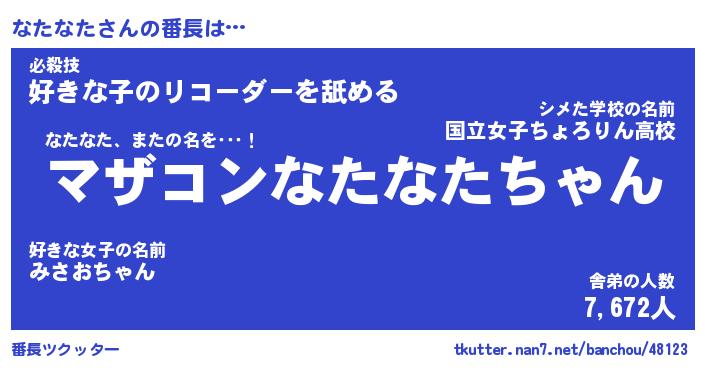 | 意味不明あだ名 | 『ペロリンなたなた』『永久保存なたなた』 |