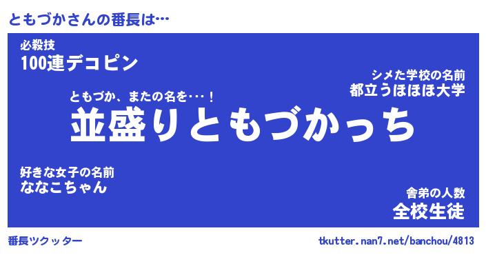 | 意味不明あだ名 | 『ペロリンともづか』『永久保存ともづか』 |
