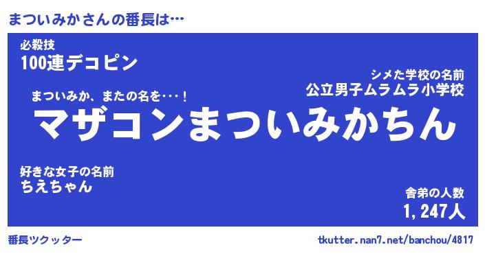 | 肩書あだ名 | 『まついみかCEO』『まついみか総理大臣』 |