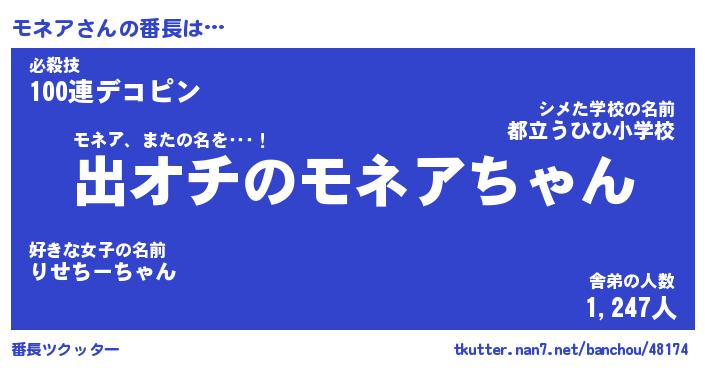 | ヒーロー風カッコイイあだ名 | 『スーパーモネア』『ウルトラモネアマン』 |
