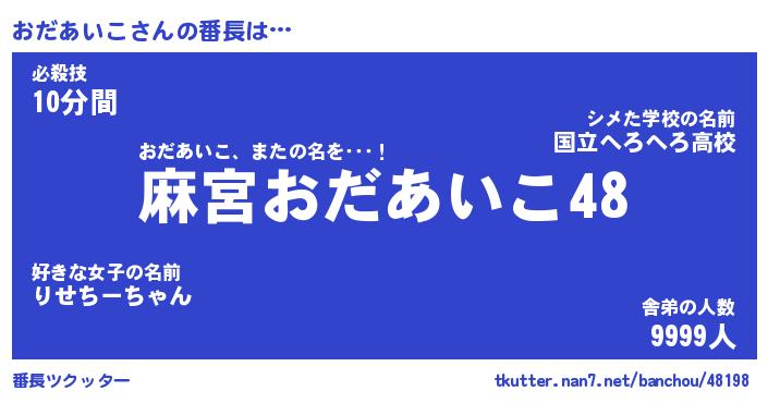 | 肩書あだ名 | 『おだあいこ店長』『おだあいこ総理大臣』 |