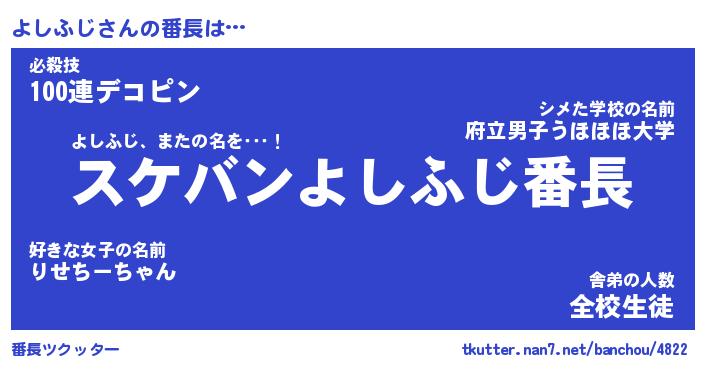 | 意味不明あだ名 | 『ペロリンよしふじ』『永久保存よしふじ』 |